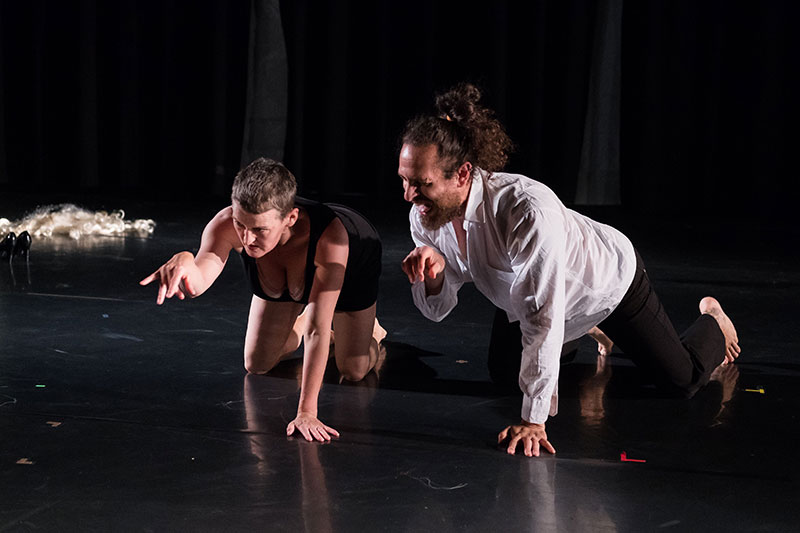 Alexandra Karabelas drückte mir zwei Peanuts DVDs in die Hand und kurzer Zeit später noch eine dritte. Ich fühlte mich leicht überfordert (sowie die Charaktere im Stück) – so viel Material, so viel Aktion, so viele Geschichten, Politik, Psychologie… Hilfe, wo fange ich an? Aber beim Zuschauen fühlte ich mich gleich berührt und angesprochen – von den zwischenmenschlichen Begegnungen - mal poetisch, mal brutal, mal verzweifelt, mal absurd. Bilder setzten sich in meinem Kopf fest: eine Tänzerin sucht vergeblich Aufmerksamkeit bei einem Tänzer; eine Frau erobert ihren Tanzpartner wie einer Bergsteigerin, um ihn dann „zurecht zu treten“. Na, puste ist eine post-peanuts Produktion. Die Erdnüsse werden durchgemischt und aufgewirbelt, Fragen gestellt: Wie funktioniert das Paar Mann-Frau in einer metrosexuellen, social-networkenden, transgenderbewussten Gesellschaft? Wieviel Frau ist Mann und umgekehrt? Wie fragil, wie transparent sind die Rollenverteilungen und die Beziehungen? Mal sehen, was passiert, wenn der Wind kommt – Na, puste!